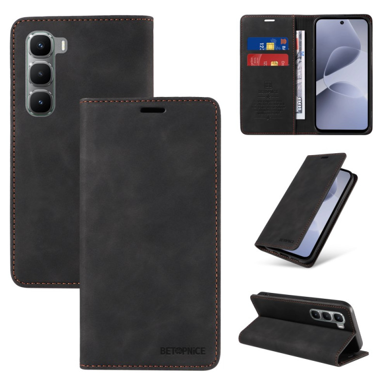 Schützen Sie Ihr Infinix Hot 60 Pro 4G stilvoll mit dieser multifunktionalen Brieftasche. Mit einem sicheren Magnetverschluss, Anti-RFID-Technologie und einem integrierten Ständer bietet es optimalen Schutz und Alltagstauglichkeit.
