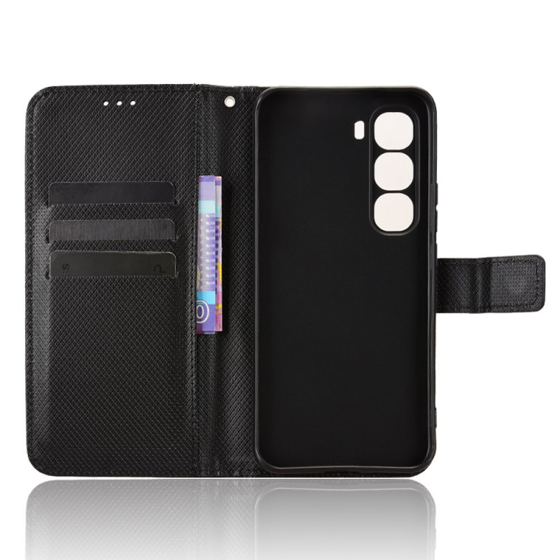 Schützen Sie Ihr Infinix Hot 60 Pro 4G stilvoll mit dieser eleganten Brieftasche. Ausgestattet mit einer raffinierten Diamanttextur, Kartenfächern, einer praktischen Handschlaufe und einem integrierten Klappständer für ein freihändiges Erlebnis.