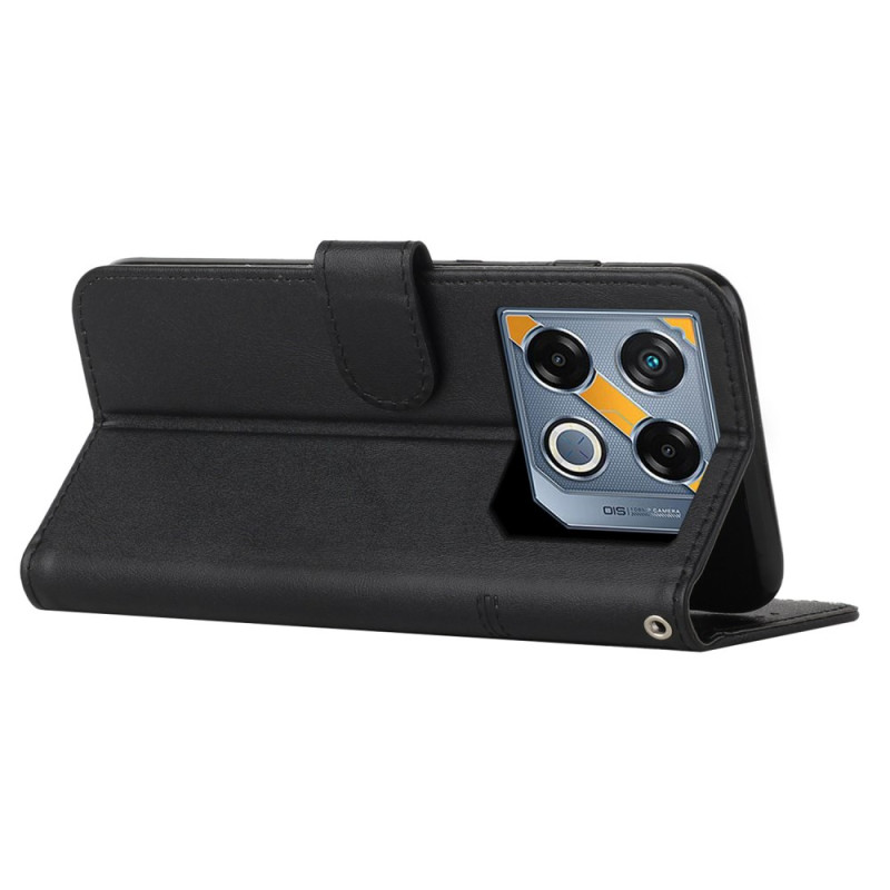 Elegante Brieftasche aus PU-Leder für Infinix GT 20 Pro 5G. Ausgestattet mit 2 Kartenfächern, 1 Fotohalter und 1 Geldscheinfach. Integrierte Standfunktion für freihändige Nutzung. Sicherer Magnetverschluss und Handschlaufe im Lieferumfang enthalten.