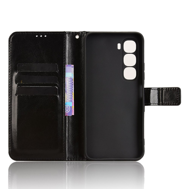 Entdecken Sie diese elegante Brieftasche aus PU-Leder mit Crazy Horse-Effekt für Ihr Infinix Hot 60 5G / Hot 60i 4G. Mit drei Kartenfächern, einem sicheren Magnetverschluss und einer praktischen Handschlaufe vereint es Stil und Funktionalität.
