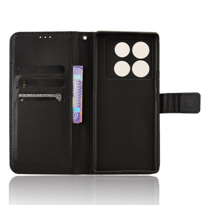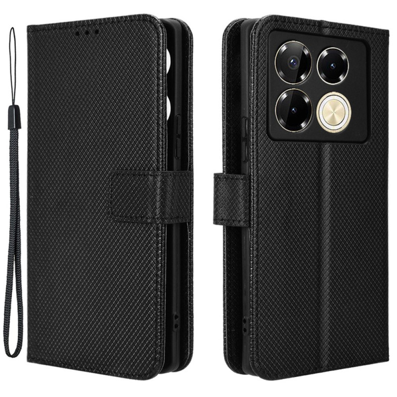 Elegante Brieftasche mit Diamanttextur für Ihr Infinix Note 40 5G. Ausgestattet mit mehreren Kartenfächern, einem integrierten Ständer und einem sicheren Magnetverschluss. Umfassender Schutz und edler Stil für den täglichen Gebrauch.