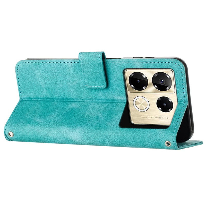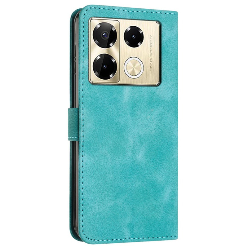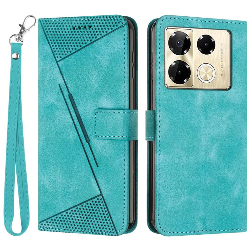 Elegante Brieftasche für Infinix Note 40 Pro 5G / 4G Pro, die Stil und Funktionalität kombiniert. Ausgestattet mit aufgedruckten Dreiecksmustern, 3 Kartenfächern, Ständerfunktion und abnehmbarer Handschlaufe. Umfassender Schutz mit sicherem Magnetverschluss.