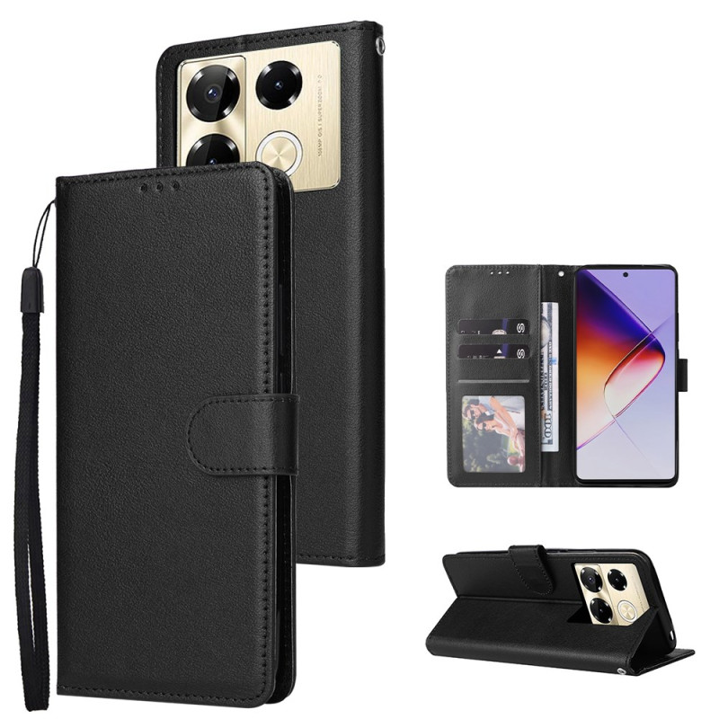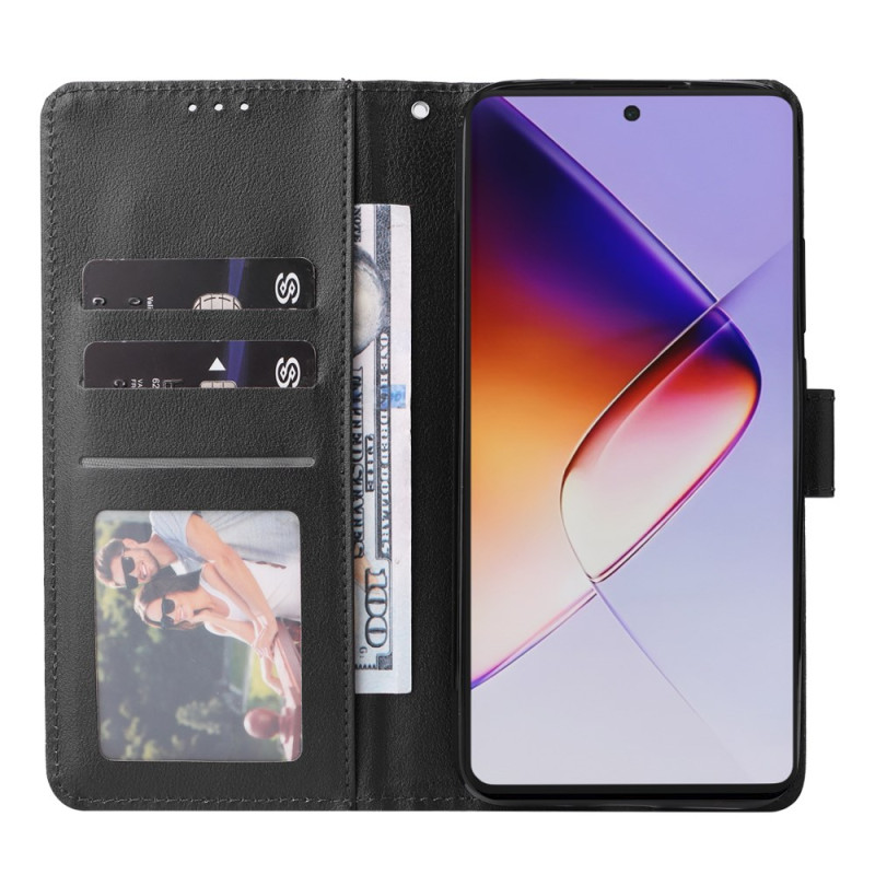 Elegante Brieftasche für Infinix Note 40 Pro 5G / 4G / 40 Pro Plus 5G mit mehreren Kartenschlitzen, integriertem Klappständer und sicherem Magnetverschluss. Praktisches Design mit Handschlaufe für den einfachen Transport im Alltag.