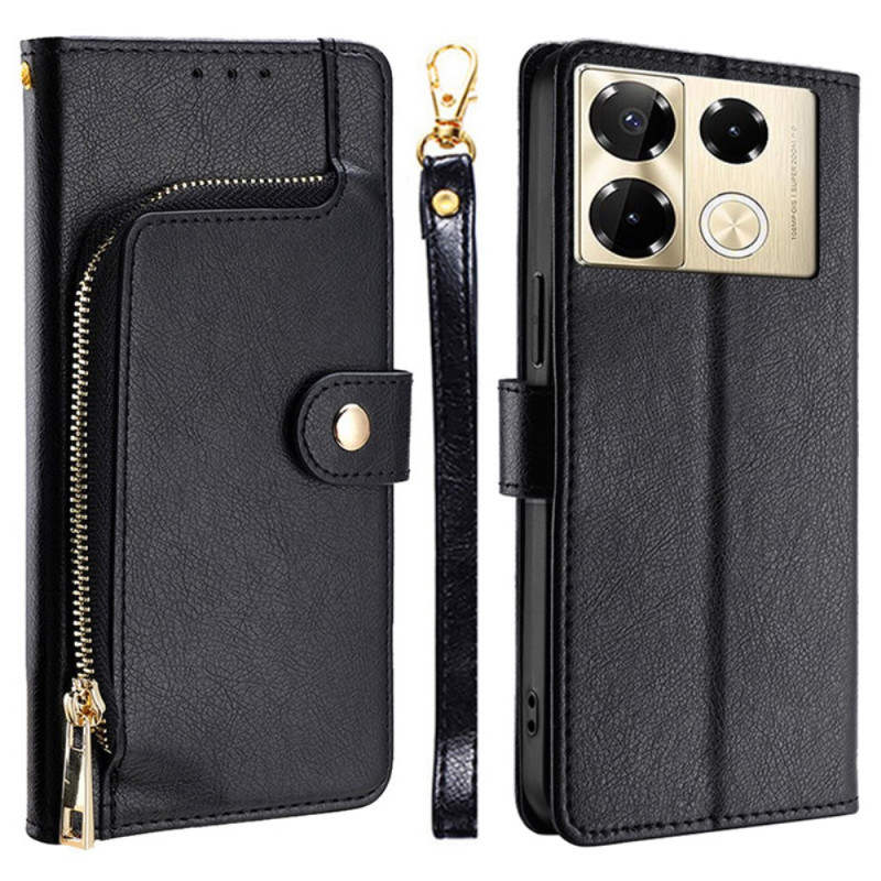 Entdecken Sie diese multifunktionale Tasche aus PU-Leder für das Infinix Note 40 Pro 4G. Ausgestattet mit einem Reißverschlussfach, Kartenschlitzen, einem Klappständer und einem praktischen Trageriemen vereint sie Stil und Schutz für den Alltag. Die gewachste Textur sorgt für einen eleganten Touch.