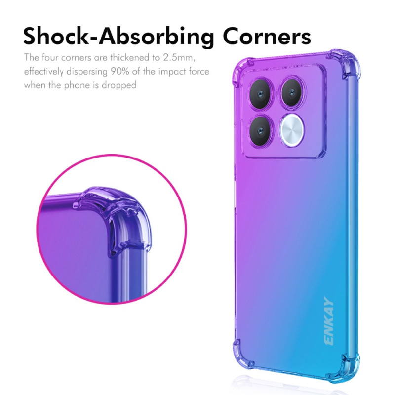 Schützen Sie Ihr Infinix Note 40 Pro 4G mit dieser ENKAY-Hülle aus hochwertigem TPU. Die vier 2,5 mm dicken Ecken absorbieren 90 % der Stöße, die bei einem Sturz entstehen. Elegantes Design mit erhöhtem Display- und Objektivschutz für optimale Sicherheit im Alltag.