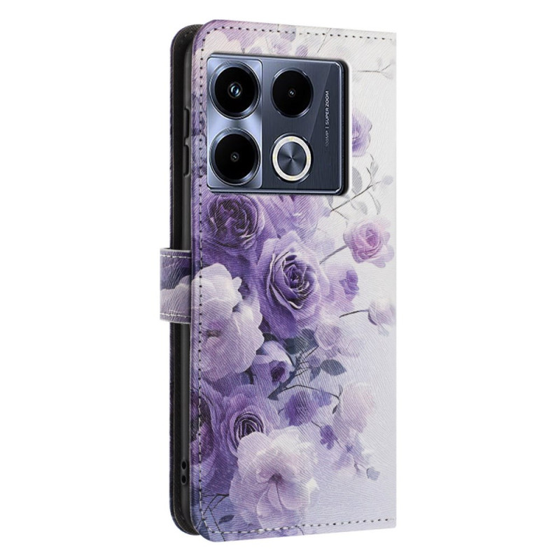 Schützen Sie Ihr Infinix Note 40 Pro 5G / 4G / 40 Pro Plus 5G stilvoll mit dieser raffinierten Brieftasche mit lila-pinkem Muster. Mit Kartenschlitzen, einem Geldscheinfach und einer Ständerfunktion vereint es Stil und Alltagstauglichkeit...