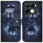 Schützen Sie Ihr Infinix Note 40 Pro 5G / 40 Pro Plus 5G stilvoll mit dieser Brieftasche mit dem einzigartigen Hunde- und Wolfsmotiv. Ausgestattet mit Fächern für Karten und Bargeld, einem praktischen Klappständer und einem sicheren Magnetverschluss.