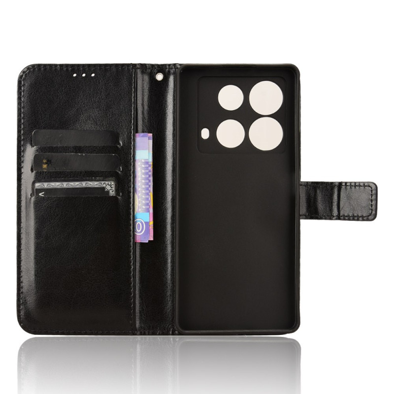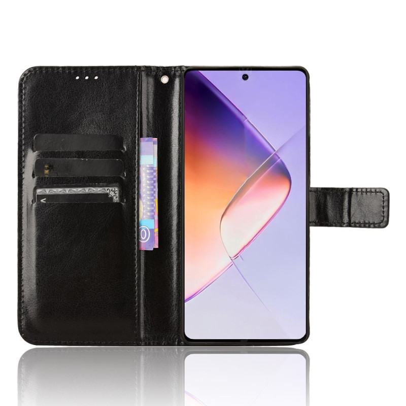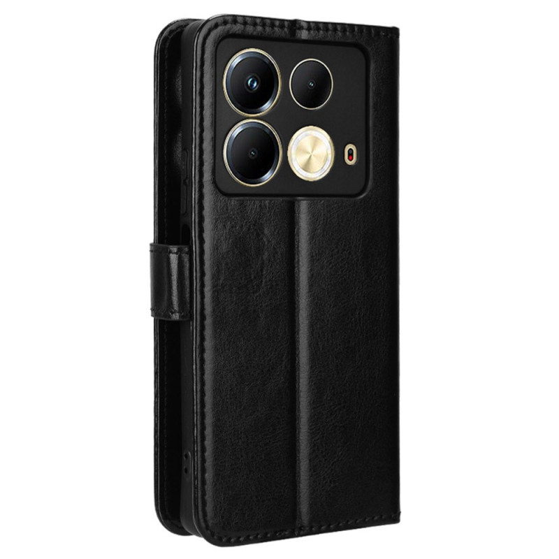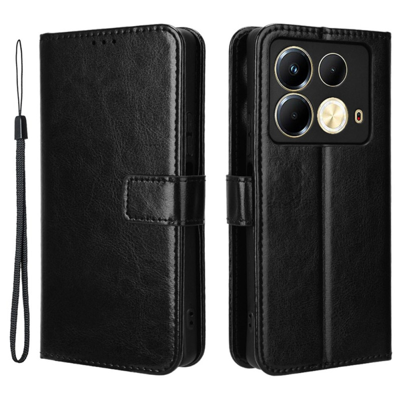 Elegante Brieftasche aus PU-Leder mit Narbenstruktur für Infinix Note 40 X6853. Ausgestattet mit 3 Kartenfächern, einem Geldscheinfach und einer Freisprechfunktion. Sicherer Magnetverschluss und mitgelieferte Handschlaufe für einen einfachen Transport.