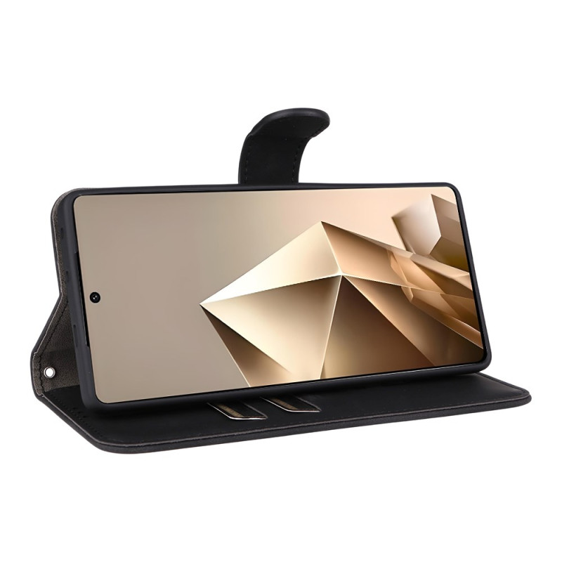Elegante Brieftasche aus PU-Leder mit Hautgefühl für Ihr Infinix Note 50 Pro 4G. Ausgestattet mit 2 Kartenschlitzen, 1 Geldscheinfach und einem verstellbaren Halter. Umfassender Schutz vor Stößen und Kratzern mit praktischer Handschlaufe.
