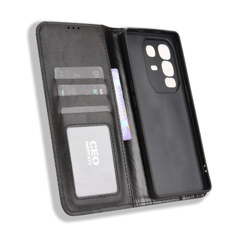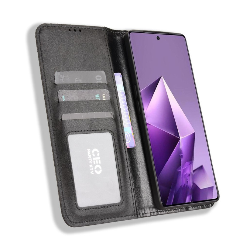 Schützen Sie Ihr Infinix Note 50 Pro Plus 5G stilvoll mit dieser Retro-Wallet-Tasche. Mit mehreren Kartenfächern, einem verstellbaren Halter und einem automatischen Magnetverschluss vereint sie Vintage-Stil mit Rundumschutz.