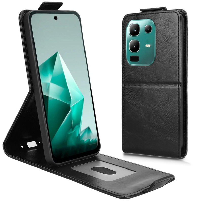 Schützen Sie Ihr Infinix Note 50X 5G elegant mit dieser vertikalen Klapptasche aus Kunstleder. Mit einem sicheren Magnetverschluss, einem integrierten Kartenhalter und einem faltbaren Ständer vereint es Stil und Funktionalität für den Alltag.