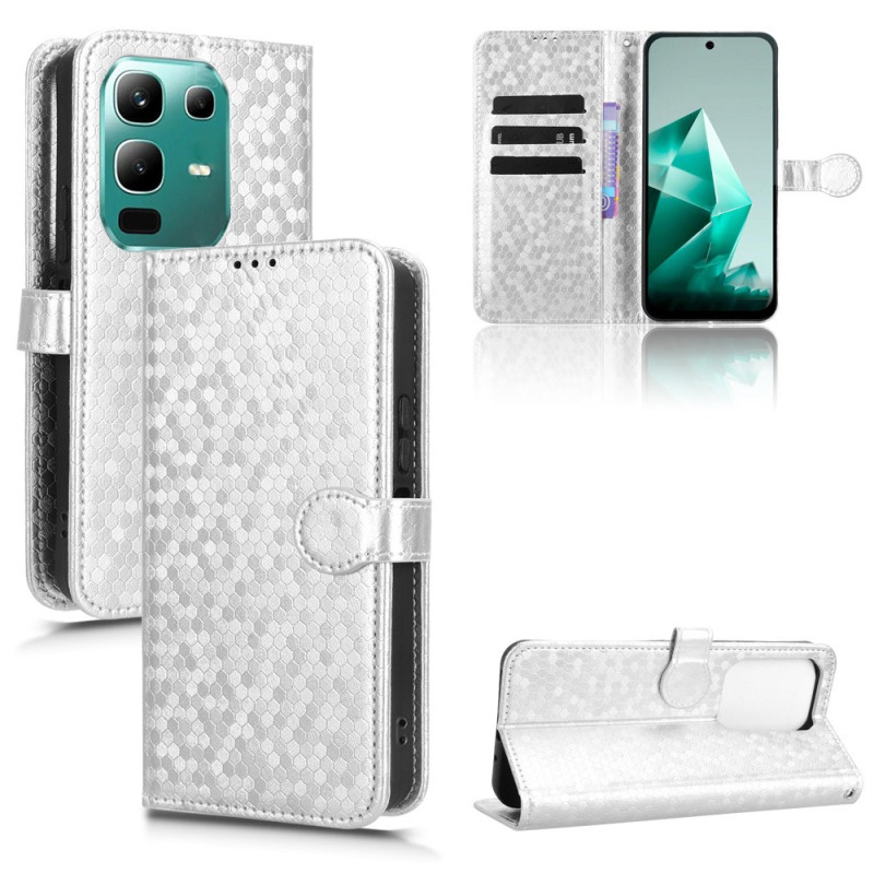 Entdecken Sie diese elegante Brieftasche aus PU-Leder mit Pünktchenmuster für Ihr Infinix Note 50X 5G. Mit Kartenfächern, einem verstellbaren Standfuß und einer praktischen Handschlaufe vereint sie Stil und Funktionalität, um Ihr Handy im Alltag zu schützen.