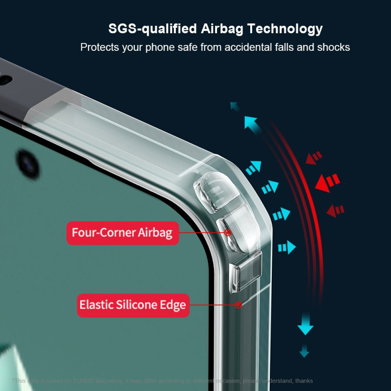 • Airbag-Technologie: Integriertes Stoßdämpfungssystem, das die Auswirkungen von Stürzen auf Ihr Smartphone deutlich verringert