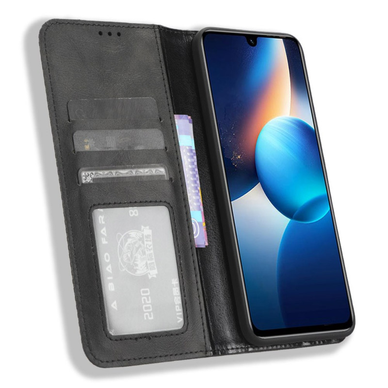 Retro-Wallet-Hülle für Infinix Zero 20 4G X6821 bietet umfassenden Schutz. Ausgestattet mit mehreren Kartenfächern, einem automatischen Magnetverschluss und einem verstellbaren Standfuß für optimales freihändiges Betrachten.