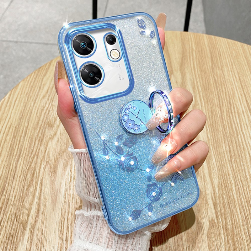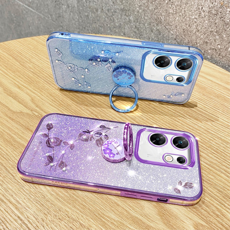 Schützen Sie Ihr Infinix Zero 30 4G elegant mit dieser glitzernden Hülle, die mit ewigen Blumen und Strasssteinen verziert ist. Das Design mit abgestuften Pailletten sorgt für einen Hauch von Glamour, während der integrierte drehbare Ständer bequemes freihändiges Betrachten und einen sicheren Halt bietet.