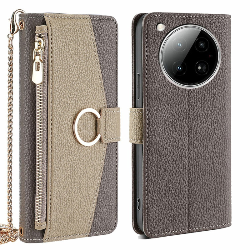 Elegante Brieftasche für Infinix Zero 40 4G mit integriertem Spiegel und Kettenschultergurt. Kombiniert Premium-Schutz und Funktionalität mit 3 Kartenfächern, Geldscheinfach und Reißverschlussfach.