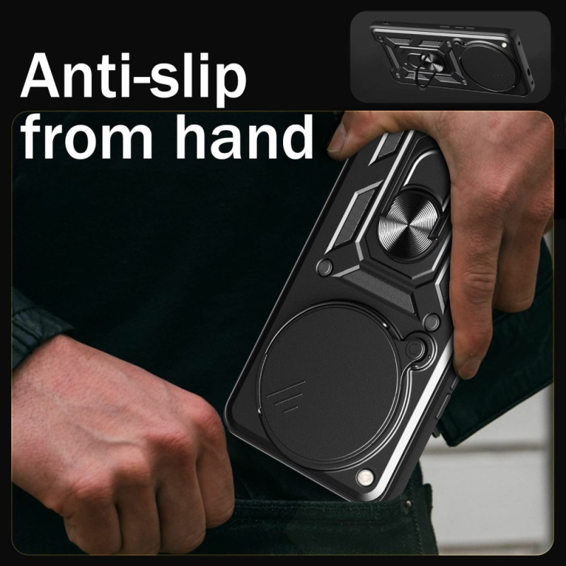 Schützen Sie Ihr Infinix Zero 40 4G mit dieser robusten Hülle, die mit einem verschiebbaren Kameraschutz, einem um 360° drehbaren Ständer und militärischer Stoßfestigkeit ausgestattet ist. Kompatibel mit magnetischer Autohalterung.