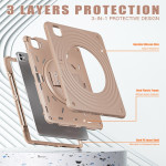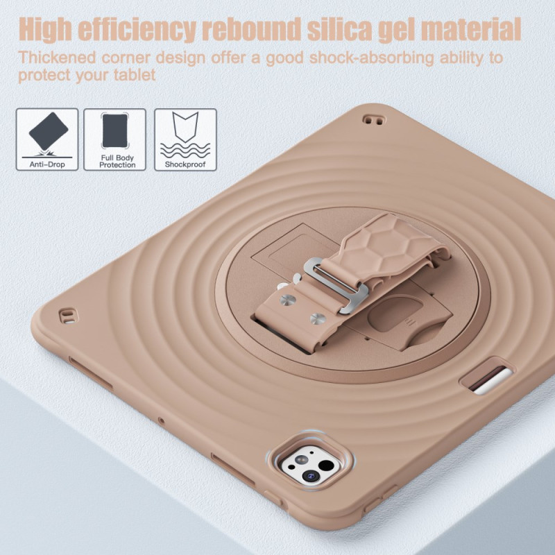 Robuste Hülle für das iPad Pro 13 (2025) / 13 (2024), die einen mehrschichtigen Schutz mit PC-Rahmen, TPU-Hülle und Silikon bietet. Ausgestattet mit einem um 360° drehbaren Ständer, verstärkten Ecken und einer verstellbaren Handschlaufe für eine komfortable Nutzung. Perfekt ausgerichtete Ladeanschlüsse für eine ungehinderte Verbindung.