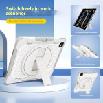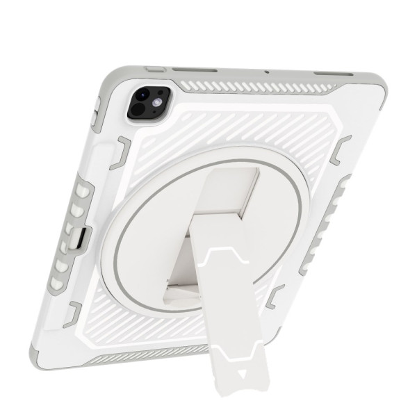 Entdecken Sie unsere Schutzhülle für das iPad Pro 13 (2025) / 13 (2024), die Haltbarkeit und Funktionalität vereint. Die aus PC und TPU gefertigte Hülle bietet maximalen Schutz vor Stößen und Kratzern. Der integrierte Ständer ermöglicht ein bequemes Betrachten des Geräts, während der Stiftschlitz für praktische Handhabung sorgt.