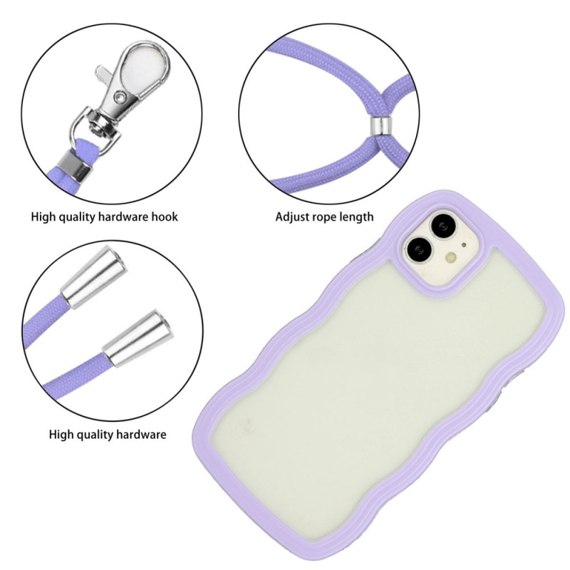 Sie hat einen bunten Rahmen, eine durchsichtige Rückseite und einen verstellbaren Riemen zum einfachen Tragen.