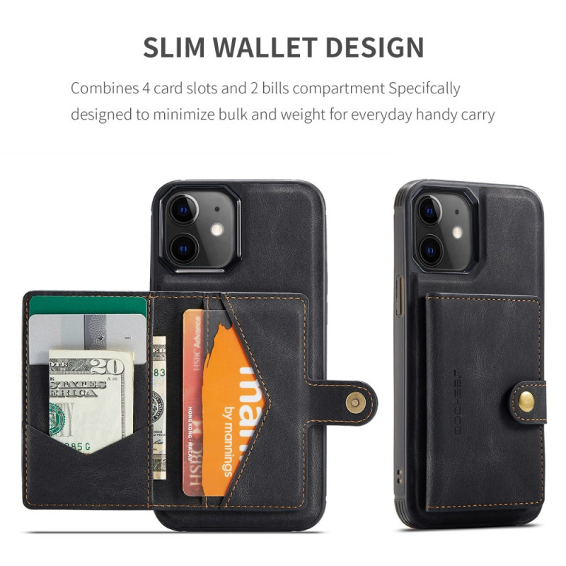 Entdecken Sie die JEEHOOD J01 Hülle für das iPhone 12 / 12 Pro, die Funktionalität und Stil vereint. Diese innovative Lederhülle bietet einen robusten Schutz, einen abnehmbaren magnetischen Kartenhalter und MagSafe-Kompatibilität. Genießen Sie das praktische 2-in-1-Design mit mehreren Kartenfächern, integrierter Standfunktion und verstärktem Schutz der Kamera.