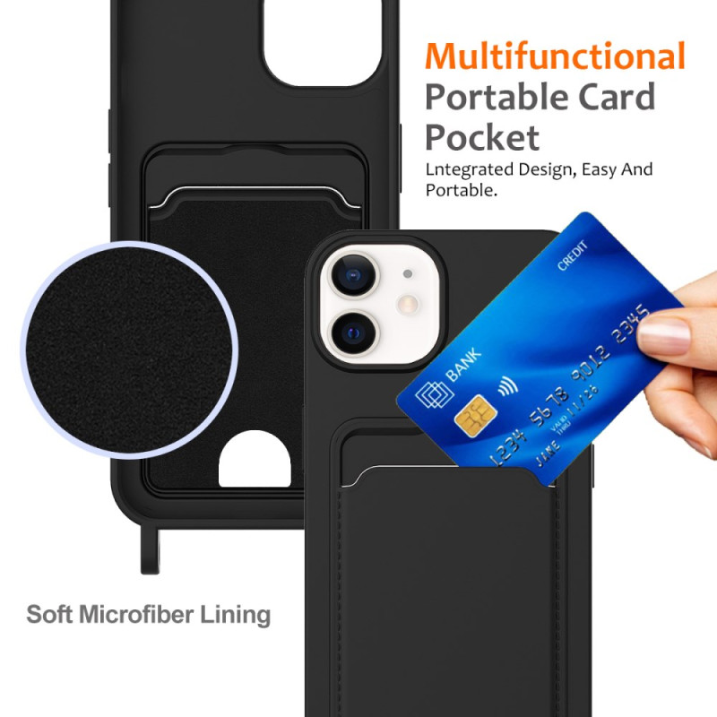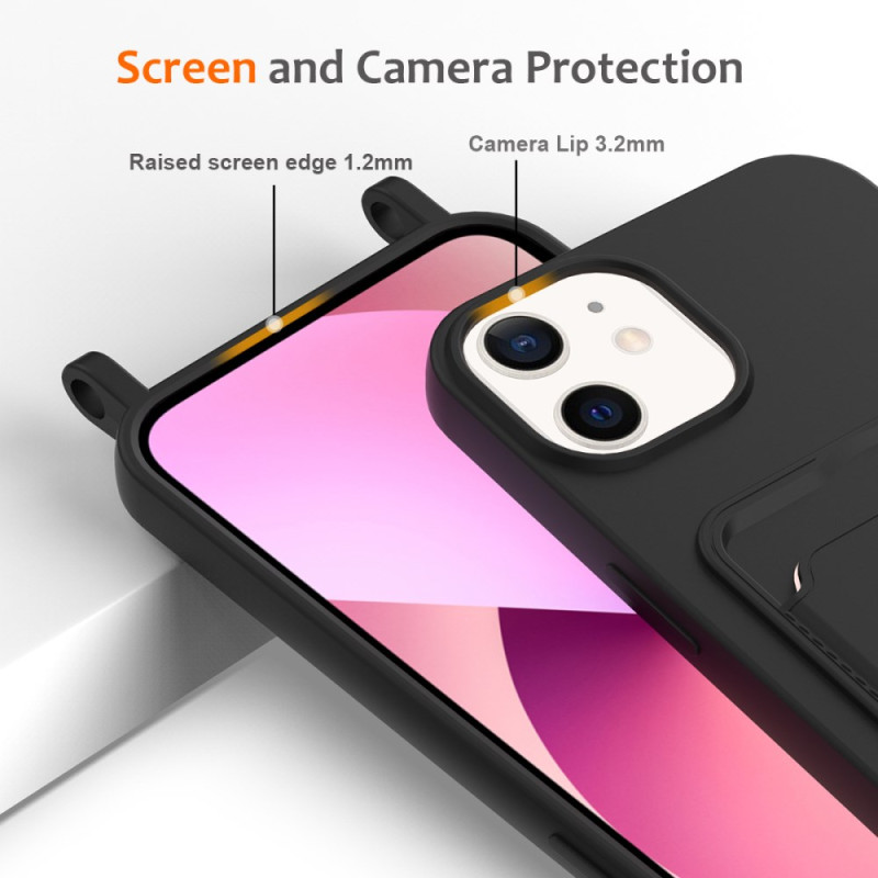 Entdecken Sie unsere innovative Hülle für das iPhone 12, die Schutz und Zweckmäßigkeit miteinander verbindet. Die Hülle aus superweichem Flüssigsilikon liegt angenehm in der Hand und ist resistent gegen Fingerabdrücke. Mit dem integrierten Kartenfach und dem 160 cm langen, verstellbaren Gurt können Sie Ihr Telefon und andere wichtige Dinge sicher und griffbereit aufbewahren.