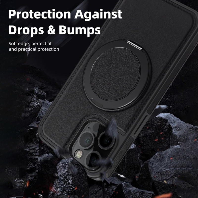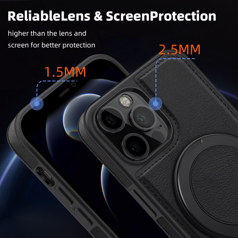 Entdecken Sie unsere elegante und praktische Hülle für das iPhone 12 / 12 Pro. Mit einem um 360° drehbaren Ring bietet sie einen robusten Schutz aus TPU und PU-Leder und ist gleichzeitig mit MagSafe kompatibel. Genießen Sie eine optimale Sicht dank der Multi-Winkel-Halterung und einen verstärkten Schutz für den Bildschirm und die Kamera.