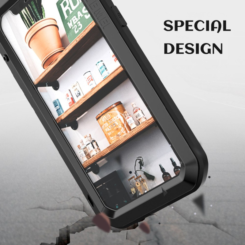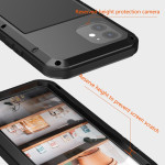Entdecken Sie unsere Rundum-Schutzhülle für das iPhone 12, die außergewöhnliche Sicherheit bietet. Sie ist aus hochwertigem Metall und Silikon gefertigt und bietet umfassenden Schutz vor Stößen, Stürzen und Staub. Mit dem Schraubverschluss und der integrierten Folie aus gehärtetem Glas bleibt Ihr Gerät sicher. Die Touch-Funktion des Bildschirms bleibt voll funktionsfähig, wenn sich Ihr Handy in der Hülle befindet.