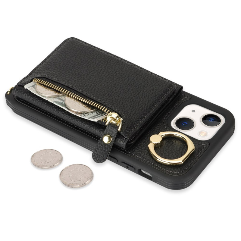 Multifunktionale Tasche aus PU-Leder und TPU für das iPhone 13 Mini. Integriertes Reißverschlussfach für Ihre wichtigsten Utensilien, Kreditkartenfächer und drehbarer Haltering. Mit abnehmbarem Schultergurt für den täglichen Gebrauch.