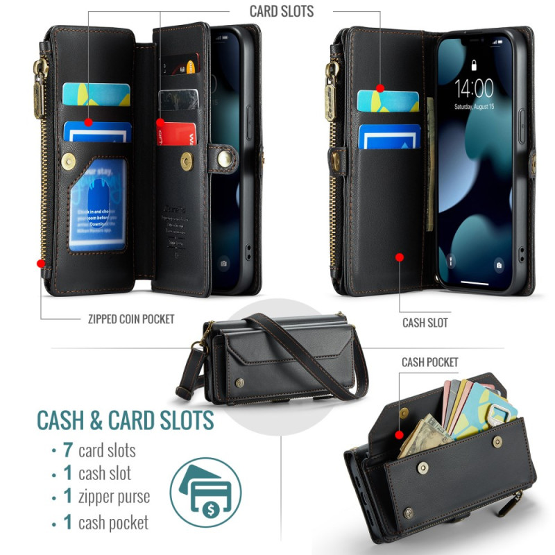 Entdecken Sie die CASEME Multifunktionstasche für das iPhone 13 mini: RFID-Schutz, 10 Kartenfächer, Geldbörse mit Reißverschluss und abnehmbarer Schultergurt. Kombinieren Sie Stil, Sicherheit und Praktikabilität mit diesem Portemonnaie aus Premium-PU-Leder.