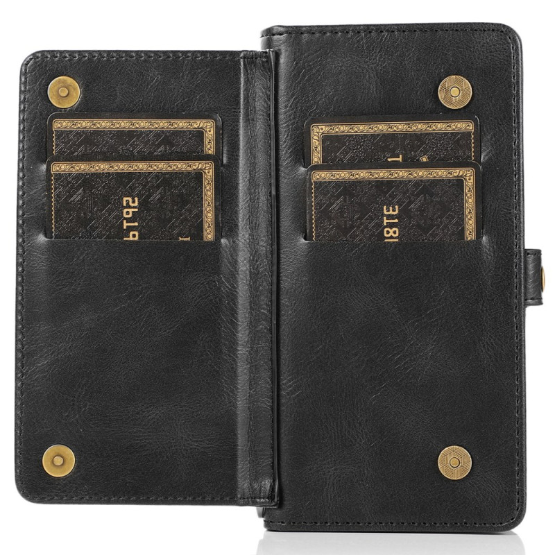 Schützen Sie Ihr iPhone 13 mini stilvoll mit dieser abnehmbaren 2-in-1-Wallet-Hülle. Das clevere Magnetdesign kombiniert eine schlanke Rückschale mit einer praktischen Klappbörse mit Kartenschlitzen und Magnetverschluss.