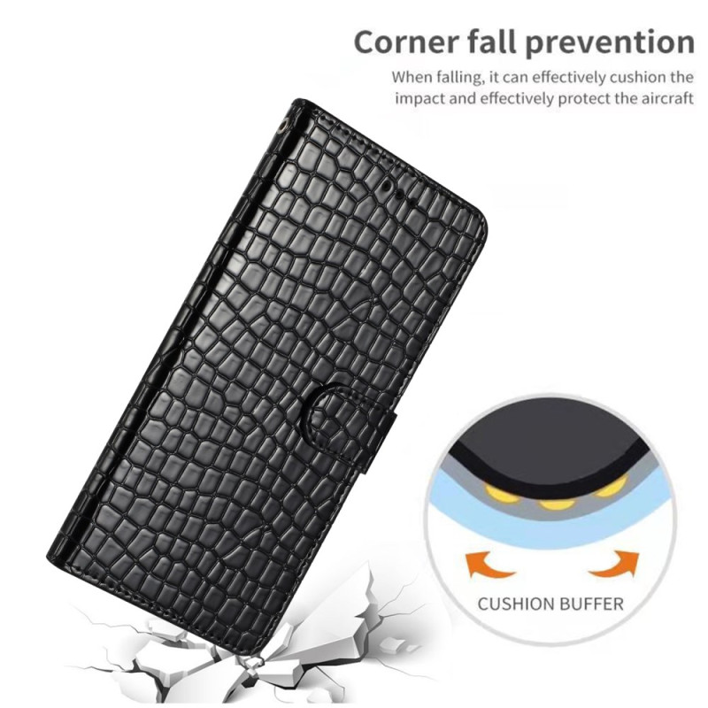 Schützen Sie Ihr iPhone 13 Mini stilvoll mit dieser Brieftasche mit Krokodilstruktur. Mit einem sicheren Magnetverschluss, drei Kartenfächern und einer praktischen Handschlaufe vereint es Stil und Funktionalität für den Alltag.