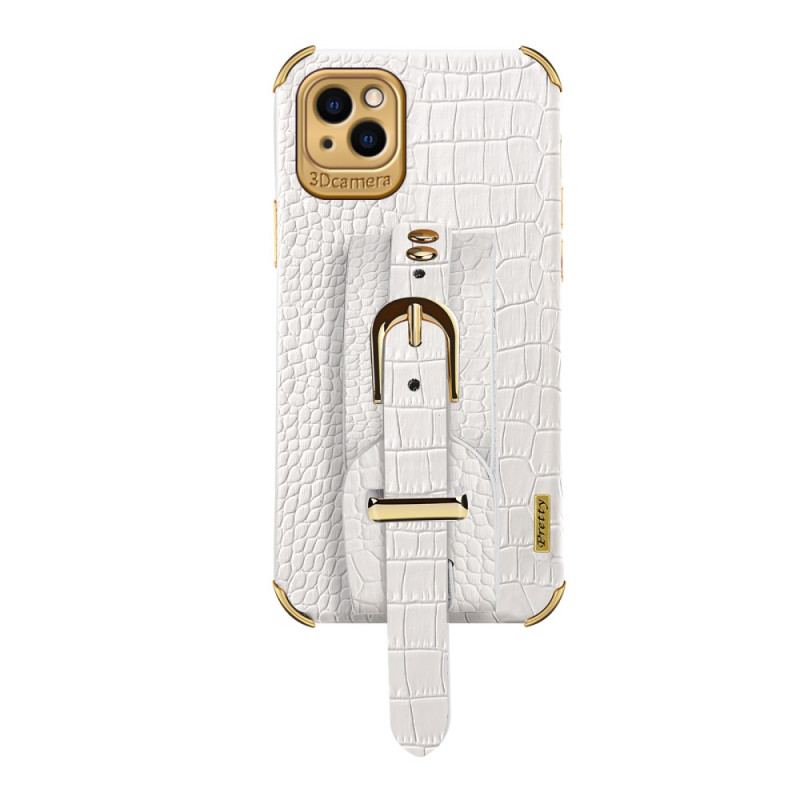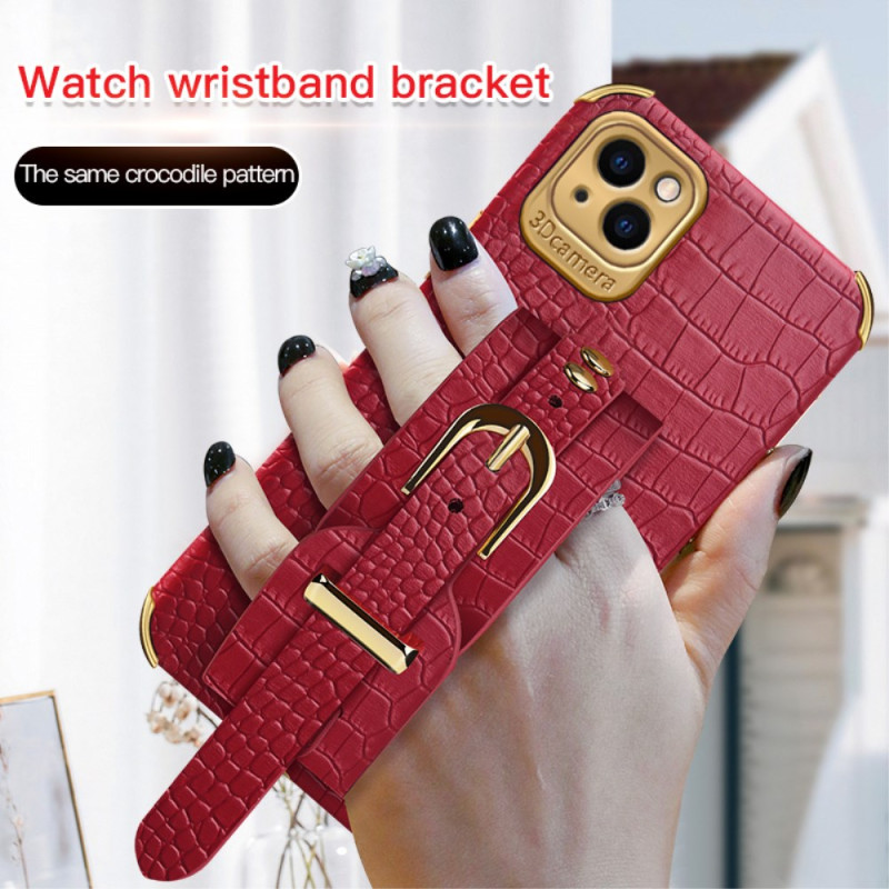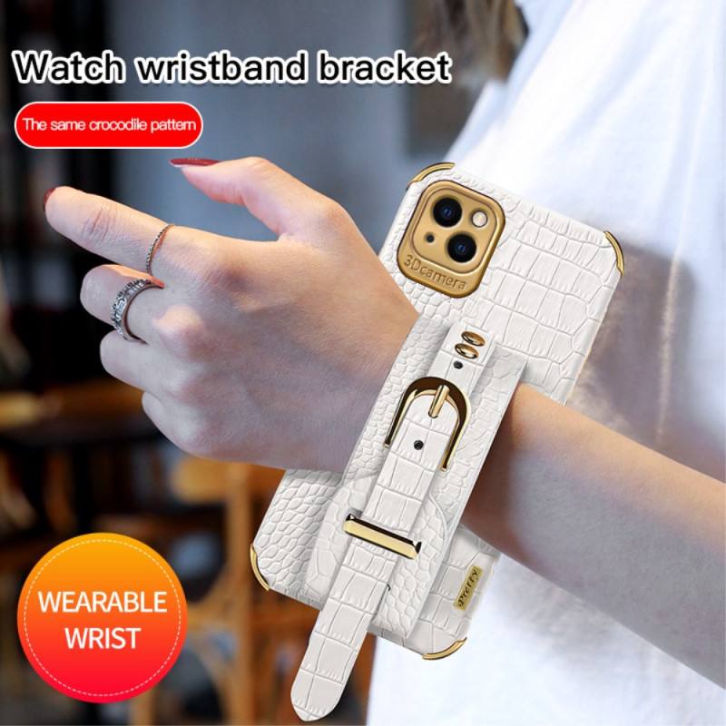 Schützen Sie Ihr iPhone 13 mini stilvoll mit dieser raffinierten Hülle mit Krokodilstruktur. Mit dem praktischen Armband können Sie Ihr Telefon am Handgelenk tragen, um es einfach und sicher zu transportieren, und gleichzeitig Ihrem Alltag einen Hauch von Stil verleihen.