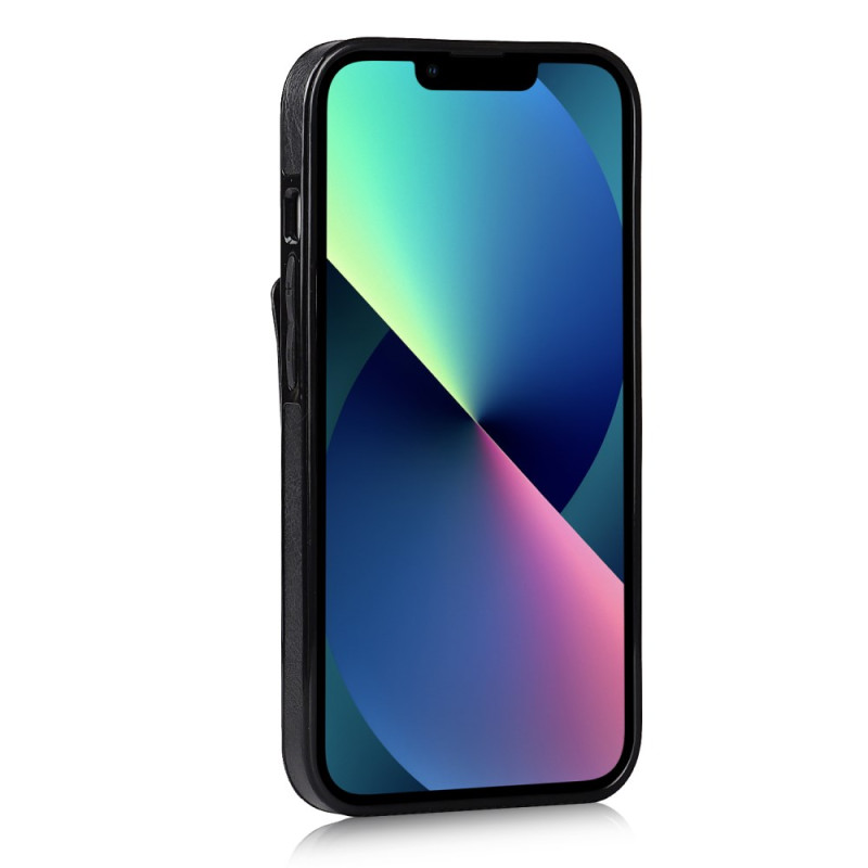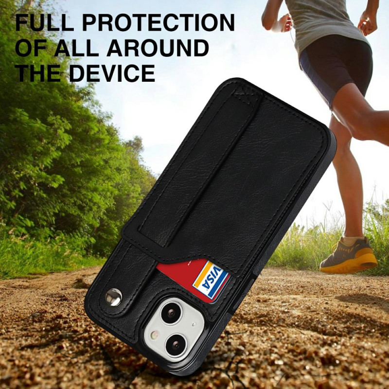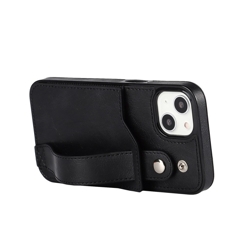 Schützen Sie Ihr iPhone 13 Mini elegant mit dieser multifunktionalen Hülle. Sie verfügt über eine praktische Handschlaufe, die auch als Halterung dient, einen sicheren Kartenhalter mit RFID-Schutz vor Raubkopien und bietet optimalen Schutz vor den alltäglichen Stößen und Kratzern.