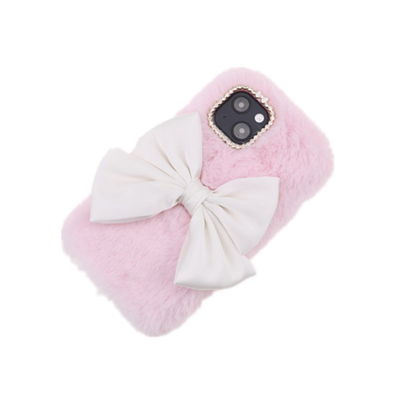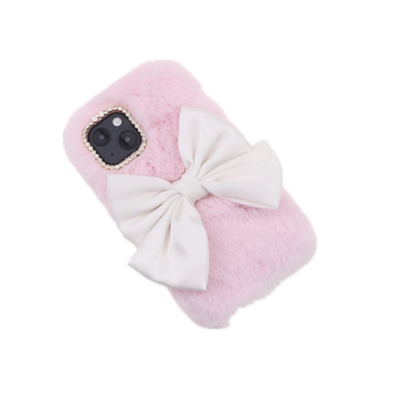 Schützen Sie Ihr iPhone 13 Mini stilvoll mit dieser niedlichen Hülle aus weichem Plüsch, die mit funkelnden Strasssteinen und einer Fliege verziert ist. Sie bietet optimalen Schutz und verwandelt Ihr Telefon in ein modisches Accessoire, das sich weich anfühlt.