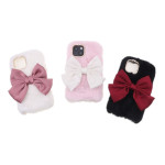 iPhone 13 Mini Schmetterlingsknoten Plüsch Cover mit Strasssteinen