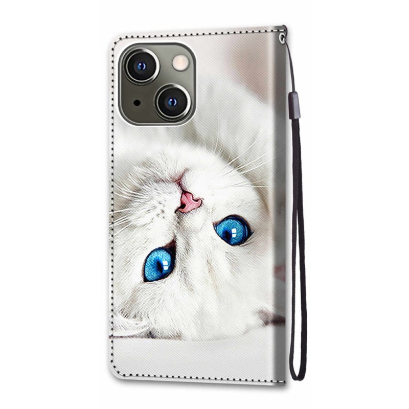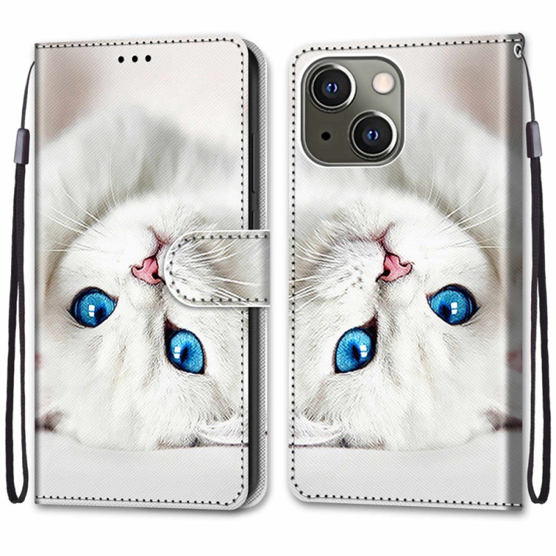 Schützen Sie Ihr iPhone 13 Mini stilvoll mit dieser eleganten Brieftasche mit weißem Katzenmotiv. Ausgestattet mit einem praktischen Klappständer, Fächern für Karten und Bargeld und einem sicheren Magnetverschluss.