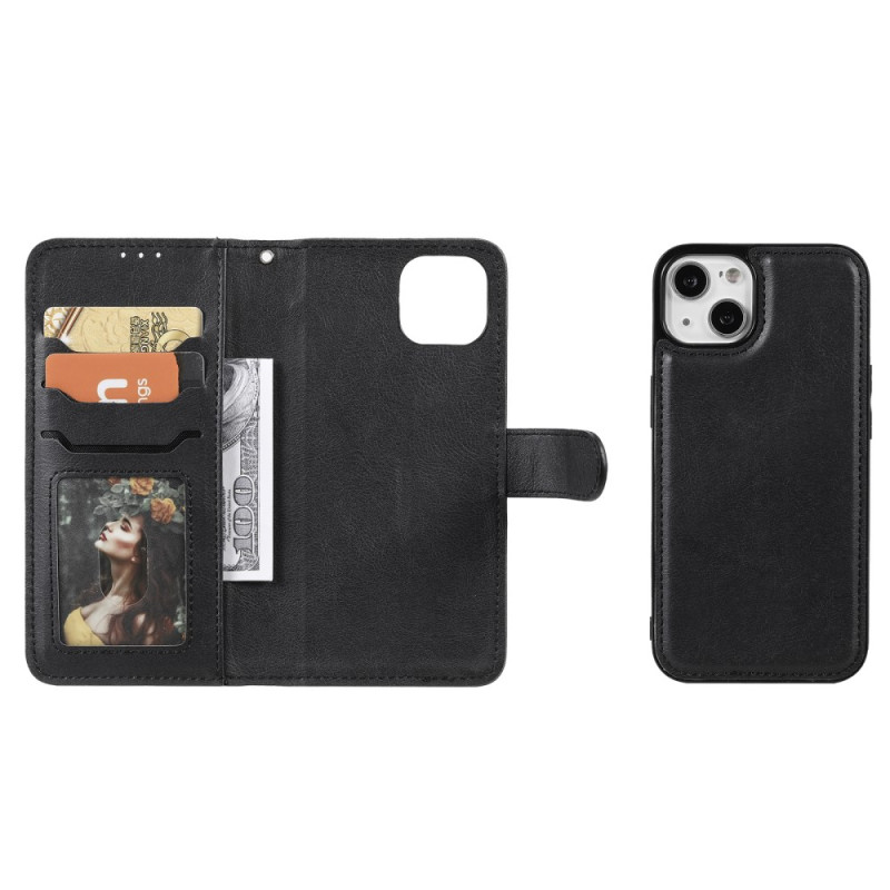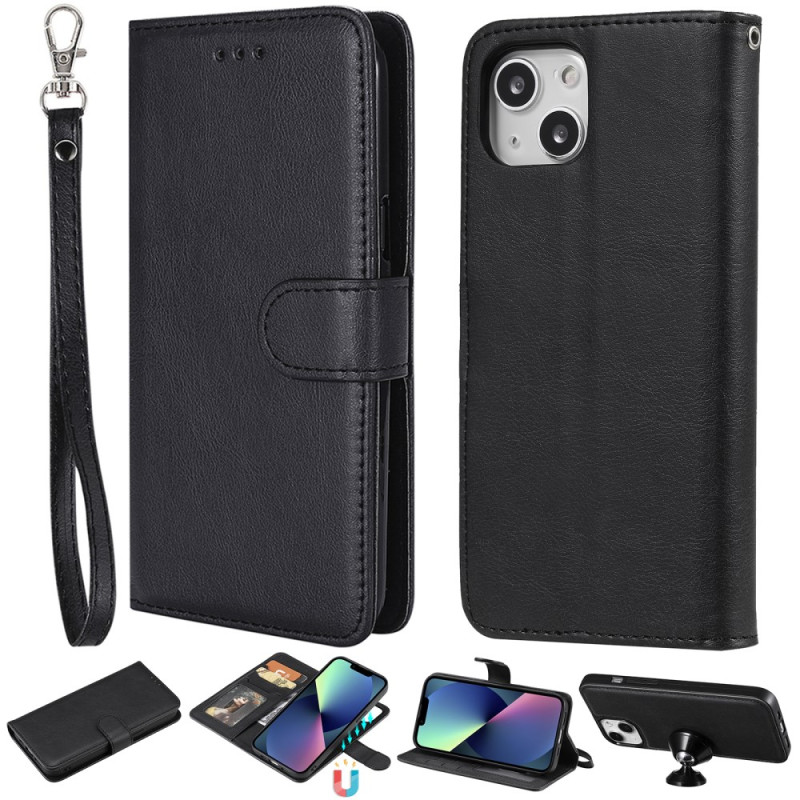 Vielseitige 2-in-1-Hülle für das iPhone 13 Mini, die eine elegante Brieftasche mit einer magnetischen, abnehmbaren Rückschale kombiniert. Genießen Sie mehrere Fächer für Karten und Bargeld, eine Ständerfunktion und eine praktische Handschlaufe für einen vereinfachten täglichen Gebrauch.