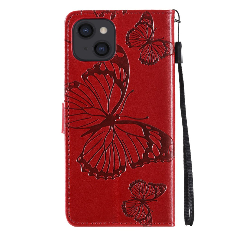 Portemonnaie-Hülle aus Premium-PU-Leder für das iPhone 13 Mini mit elegantem, eingraviertem Schmetterlingsmotiv. Inklusive 2 Kartenfächern, Seitenfach, Freisprechfunktion und praktischer Handschlaufe für einen stilvollen Rundumschutz.