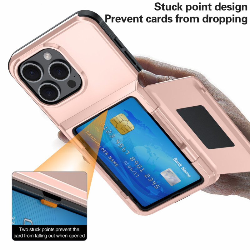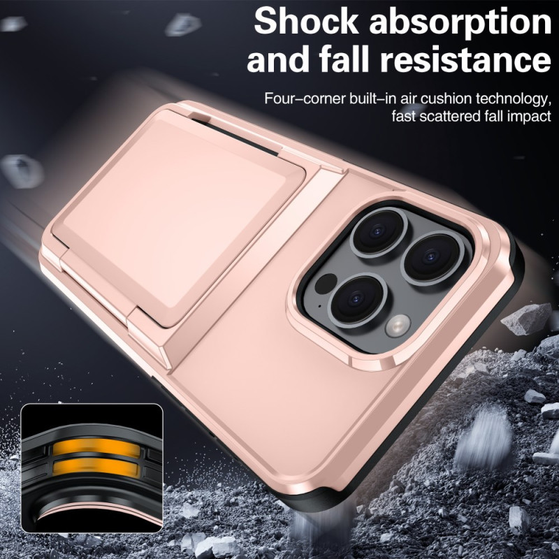 Schützen Sie Ihr iPhone 13 Pro stilvoll mit dieser multifunktionalen Hülle. Der integrierte Kartenhalter bietet Platz für bis zu drei Karten, während die ausklappbare Halterung eine optimale freihändige Betrachtung ermöglicht.