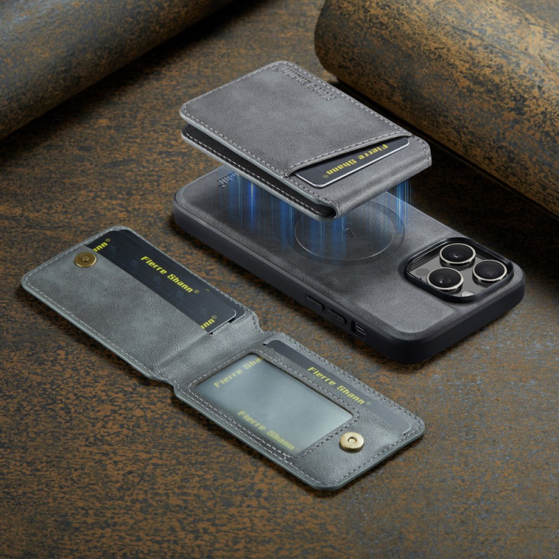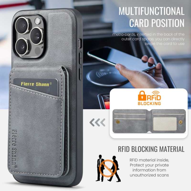 Schützen Sie Ihr iPhone 13 Pro elegant mit dieser multifunktionalen Hülle. Mit einem herausnehmbaren Kartenhalter mit RFID-Schutz, einem integrierten Ständer und Mag-Safe-Kompatibilität vereint sie Stil und Alltagstauglichkeit.