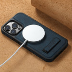 Schützen Sie Ihr iPhone 13 Pro stilvoll mit dieser magnetischen Premium-Hülle. Sie ist MagSafe-kompatibel und bietet einen umfassenden Schutz vor Kratzern und täglicher Abnutzung. Die integrierte Halterung ermöglicht ein optimales freihändiges Betrachten.