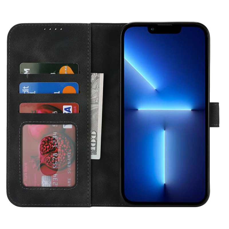 Multifunktionale Brieftasche aus Premium-PU-Leder für das iPhone 13 Pro Max / 12 Pro Max. Verstauen Sie Ihre Karten, Bargeld und schützen Sie Ihr Telefon mit Stil. Sicherer Magnetverschluss und integrierte Standfunktion für optimalen Tragekomfort.