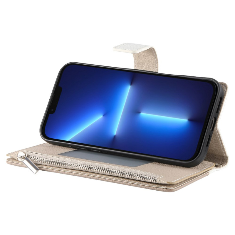 Multifunktionale Tasche aus Premium-PU-Leder für das iPhone 13 Pro Max. Kombiniert Eleganz und Praktikabilität mit mehreren Fächern für Karten, Münzen und Geldscheine. Anspruchsvolles Design mit verstellbarem Schultergurt für freihändiges Tragen.