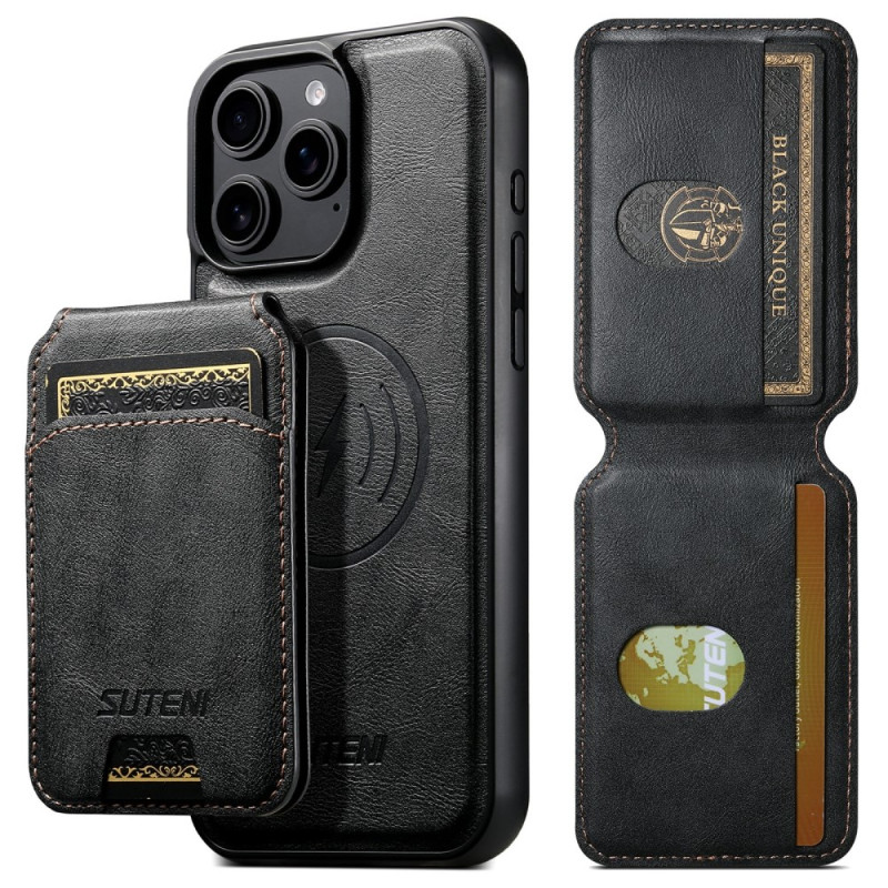 Schützen Sie Ihr iPhone 13 Pro Max elegant mit dieser magnetischen Premium-Hülle aus strukturiertem Leder. Sie ist MagSafe-kompatibel und verfügt über einen herausnehmbaren Kartenhalter, der sich in eine Halterung verwandelt, um Ihnen im Alltag die Hände frei zu halten.