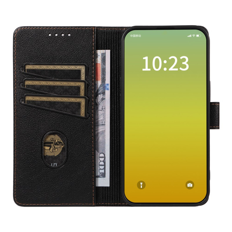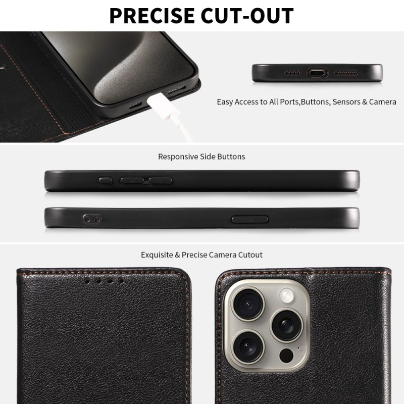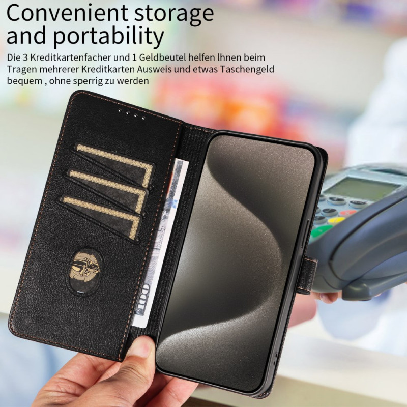 Schützen Sie Ihr iPhone 13 Pro Max stilvoll mit dieser Brieftasche aus PU-Leder mit Litschi-Textur. Ausgestattet mit 3 Kartenfächern mit RFID-Sperre, einem Fach für Bargeld und einer Freisprechfunktion. Sicherer Magnetverschluss und Rundum-Schutz vor Stößen und Kratzern.
