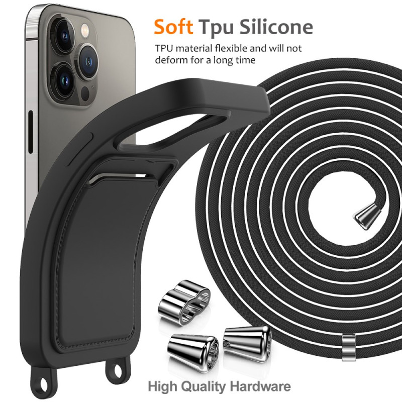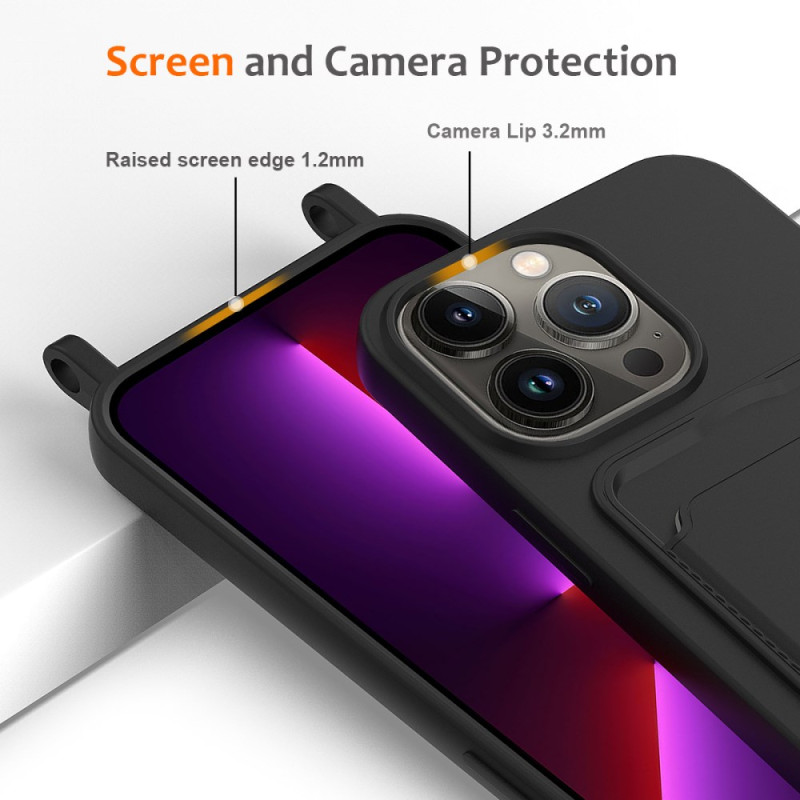 Schützen Sie Ihr iPhone 13 Pro Max elegant mit dieser ultraweichen Hülle aus Flüssigsilikon. Mit einem integrierten Kartenhalter und einem verstellbaren, 160 cm langen Schultergurt bietet sie praktischen Nutzen und optimalen Schutz für Ihren Alltag.