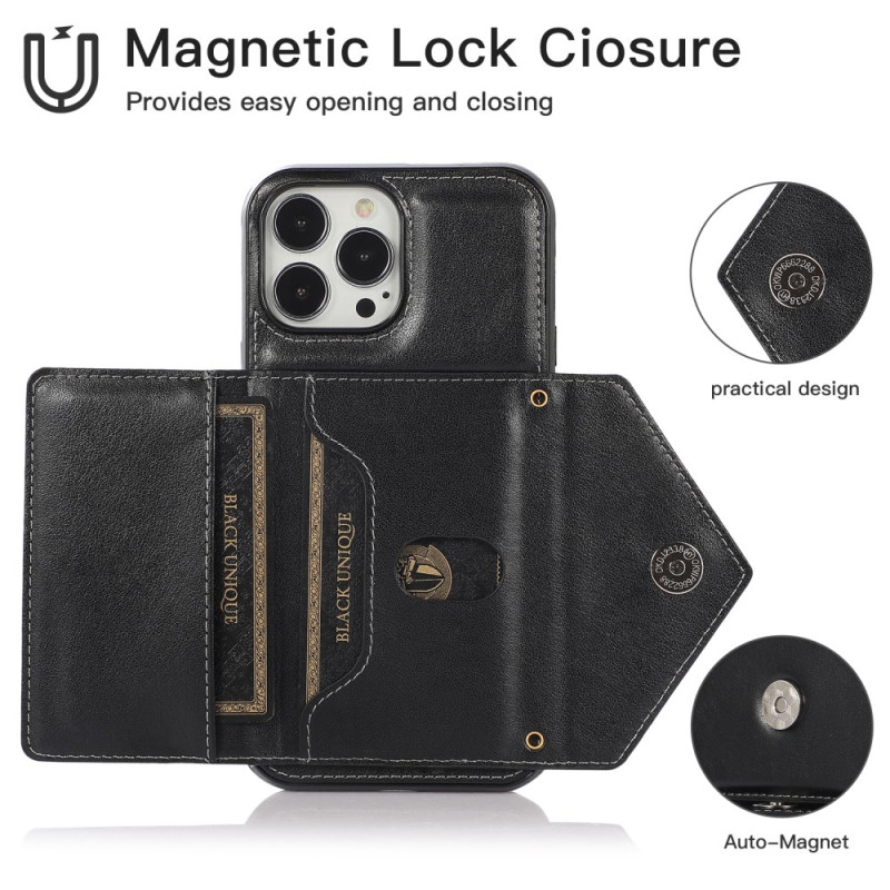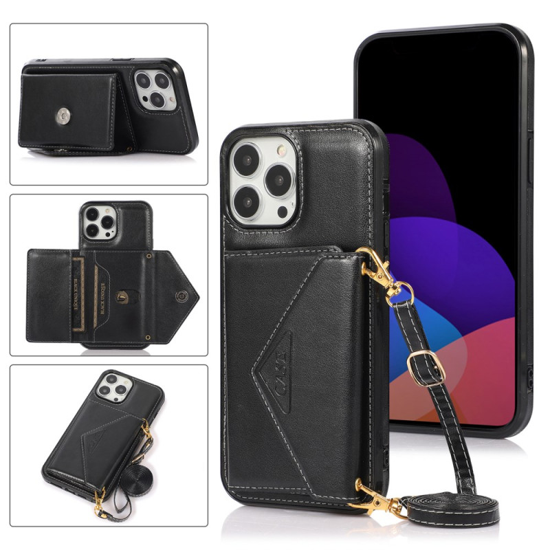 Elegantes Multifunktions-Cover für das iPhone 13 Pro Max, das erstklassigen Schutz mit praktischen Funktionen kombiniert. Mit magnetischem Kartenhalter, Freisprecheinrichtung und abnehmbarem, verstellbarem 1,5 m langem Schultergurt für den täglichen Gebrauch.