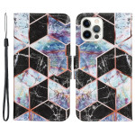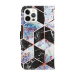 Schützen Sie Ihr iPhone 13 Pro Max stilvoll mit dieser multifunktionalen Brieftasche im anspruchsvollen schwarzen geometrischen Design. Mit integrierten Kartenschlitzen und einer praktischen Handschlaufe lässt es sich in einen Ständer verwandeln, um die Hände optimal frei zu haben.