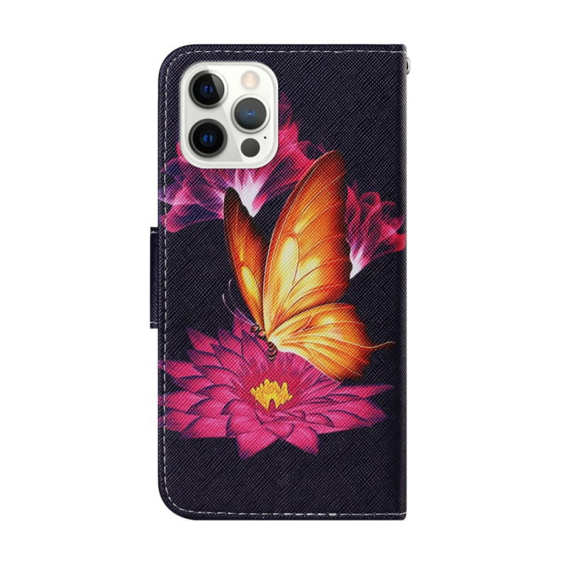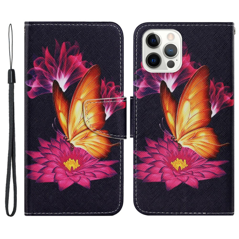 Schützen Sie Ihr iPhone 13 Pro Max elegant mit dieser raffinierten Brieftasche mit Schmetterlings- und Blumenmuster. Mit praktischen Kartenschlitzen, einer sicheren Handschlaufe und einer integrierten Halterung für freihändiges Betrachten.